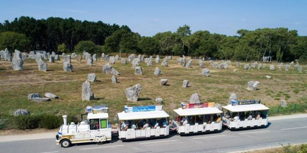 Vom Campingplatz aus führt eine kommentierte Tour mit der Touristenbahn zu den Menhiren von Carnac: den Ausrichtungen von Ménec, Kermario und Kerlescan. Nach den megalithischen Stätten geht es weiter nach Carnac-Ville und Carnac-Plage, dem Hafen und dem großen Strand. Von dort aus folgt der kleine Zug den Stränden zwischen Carnac und La Trinité-sur-Mer und bringt Sie zum Hafen von La Trinité-sur-Mer.