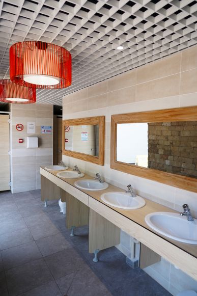 - WCs, Duschen, Ausguss für Chemietoiletten, Waschbecken